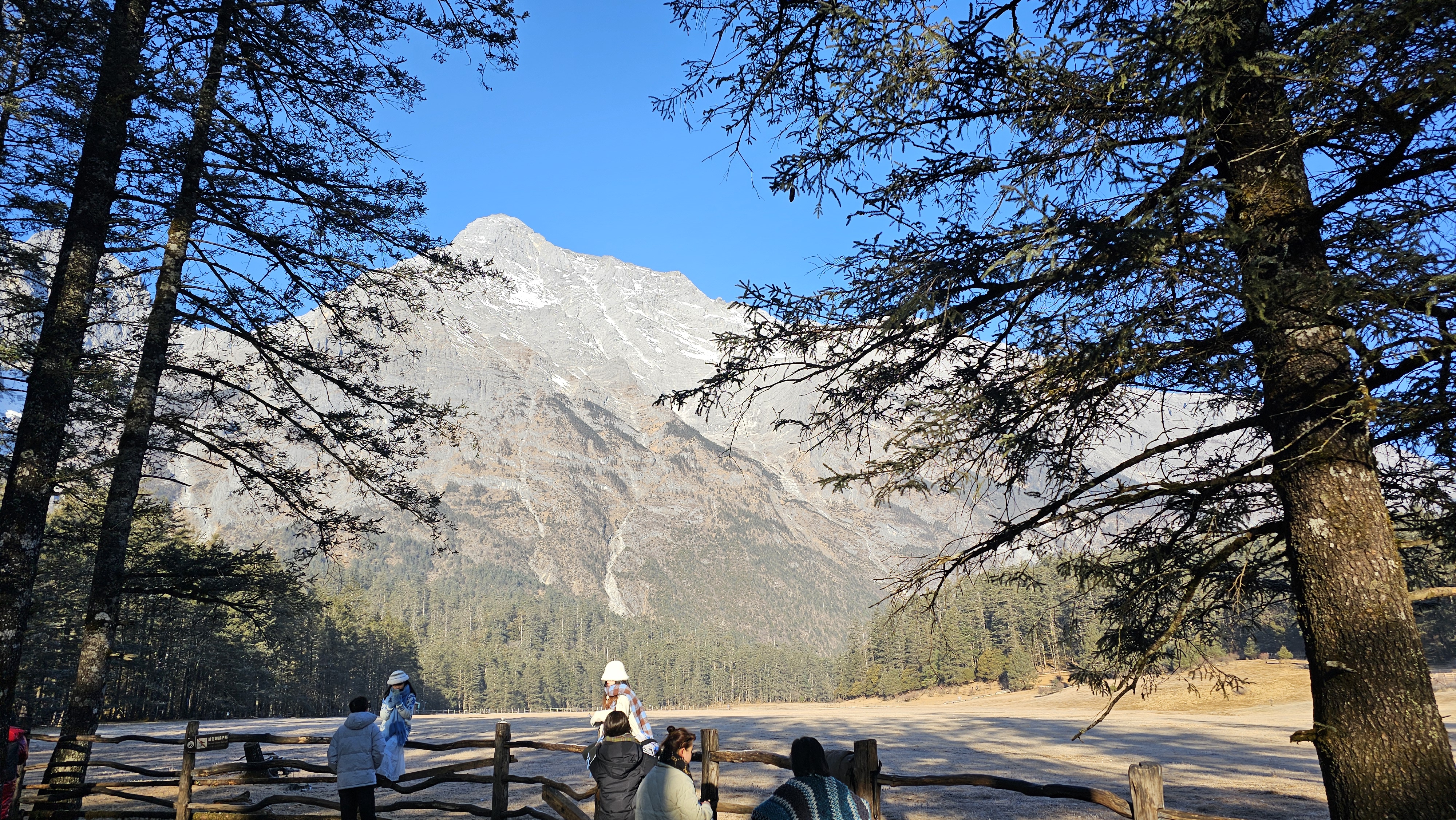 나무 한 그루 허락하지 않아 산의 골격만 드러낸 설산을 바로 눈 앞에 두고 보니 비현실적이다. 햇살은 따가운데 산에는 눈이 그대로 있고 그 아래 또 너른 평원이 존재하다니...여름철에 오면 운삼평에는 녹음이 짙고 들꽃이 피어 있는데 산에는 눈이 그득해서 정말 신비로웠다고 하던데 지금은 겨울이라 그런 경이로움은 느껴지지 않았다.