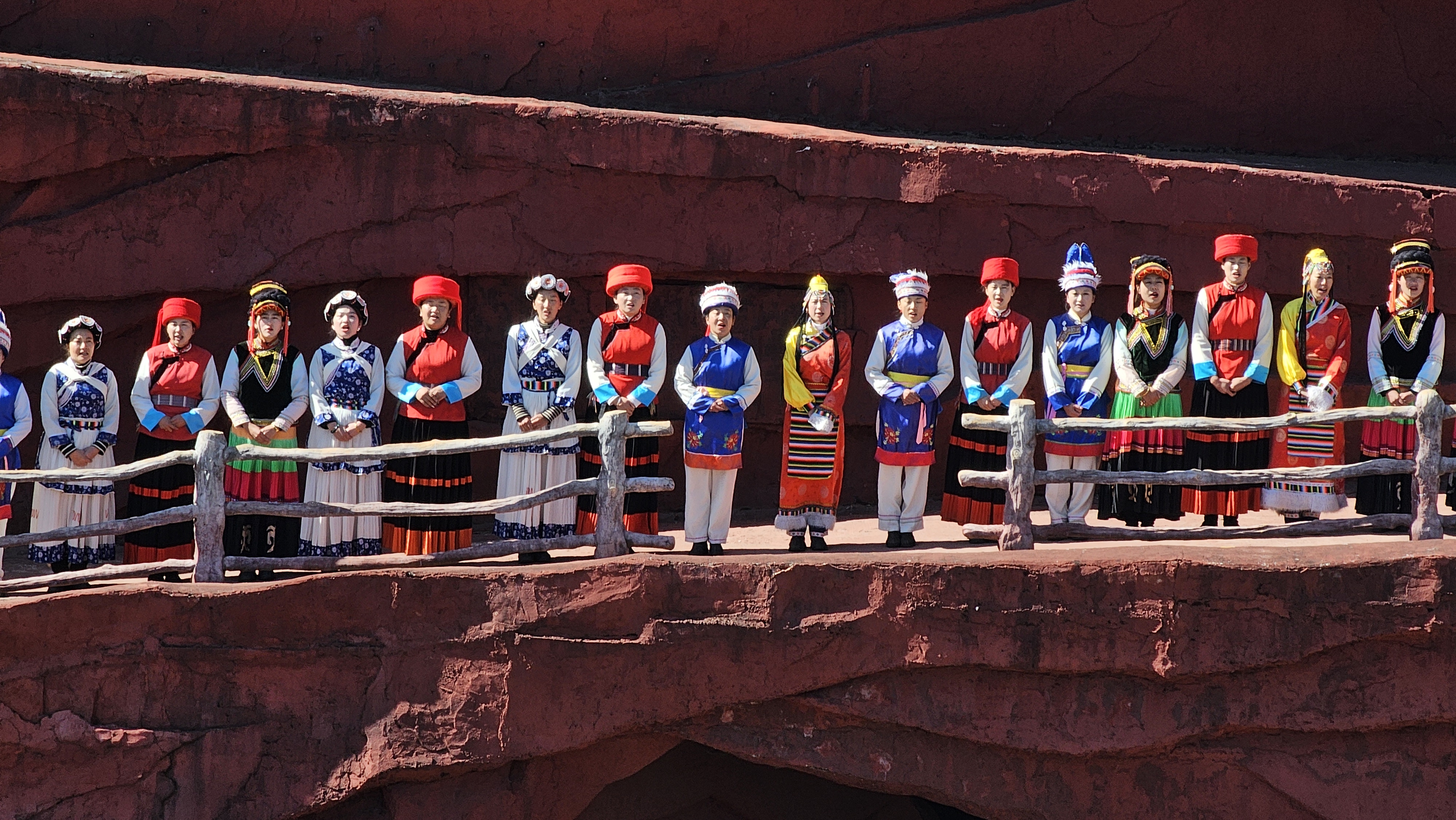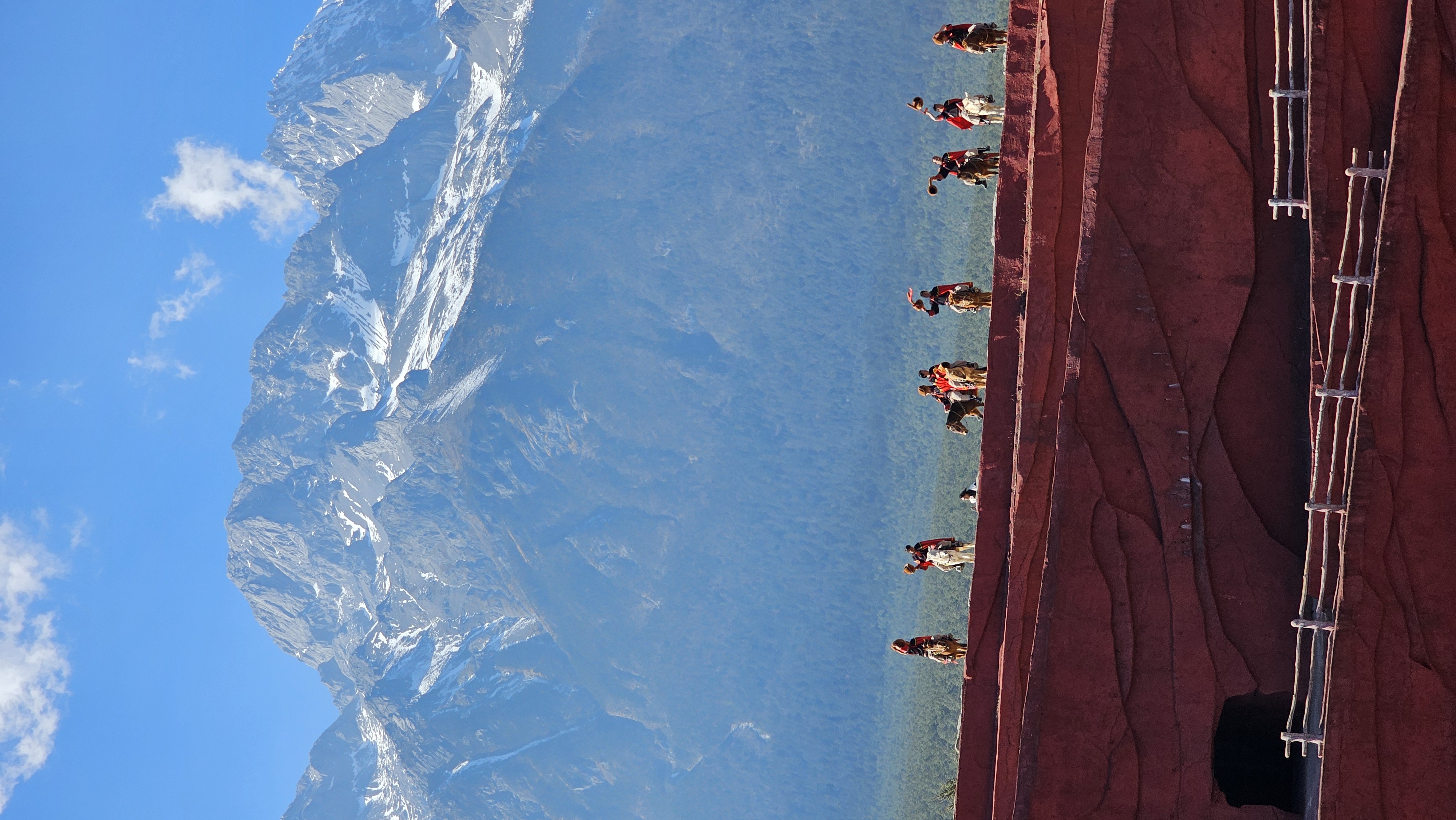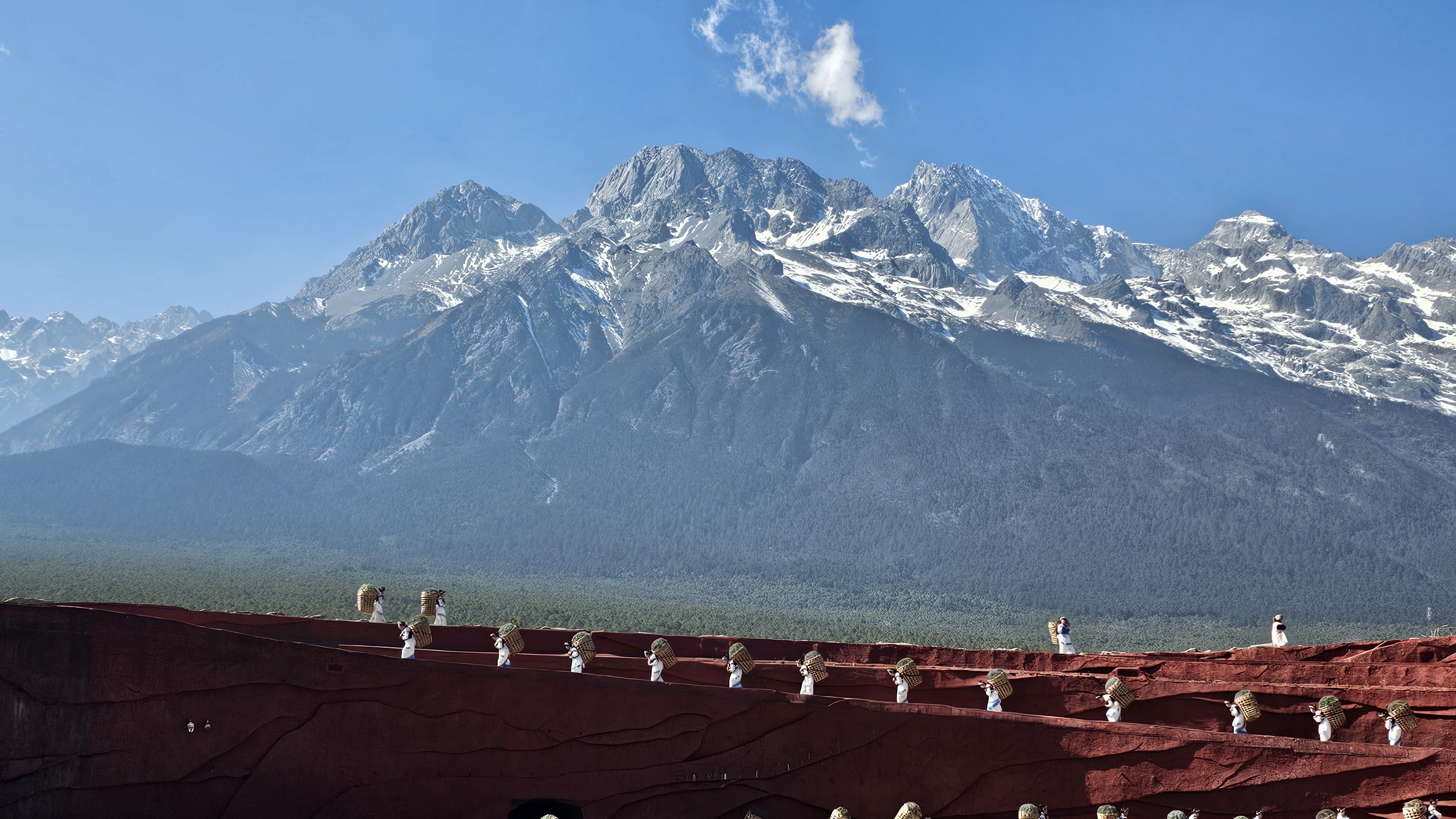 차마고도의 마방(馬幇)을 재현하여, 지상과 천상의 사랑 이야기, 나시족 전통 춤, 신에게 바치는 북춤과 기도의식, 관객과 함께하는 축복 의식이 1시간 가량 펼쳐졌다. 공연은 중국어로 진행되었지만 웅장한 설산을 배경으로 한 강렬한 색채와 음악이 언어의 장벽을 넘어서 공감이 되었다. 그 공감에 옥룡설산 자체가 무대배경이 되고 있다는 것이 가장 큰 몫을 차지하고 있음은 분명하다. 1월이지만 날이 맑고 햇살이 강해서 그리 추운 줄 모르고 공연에 집중할 수 있었다.
