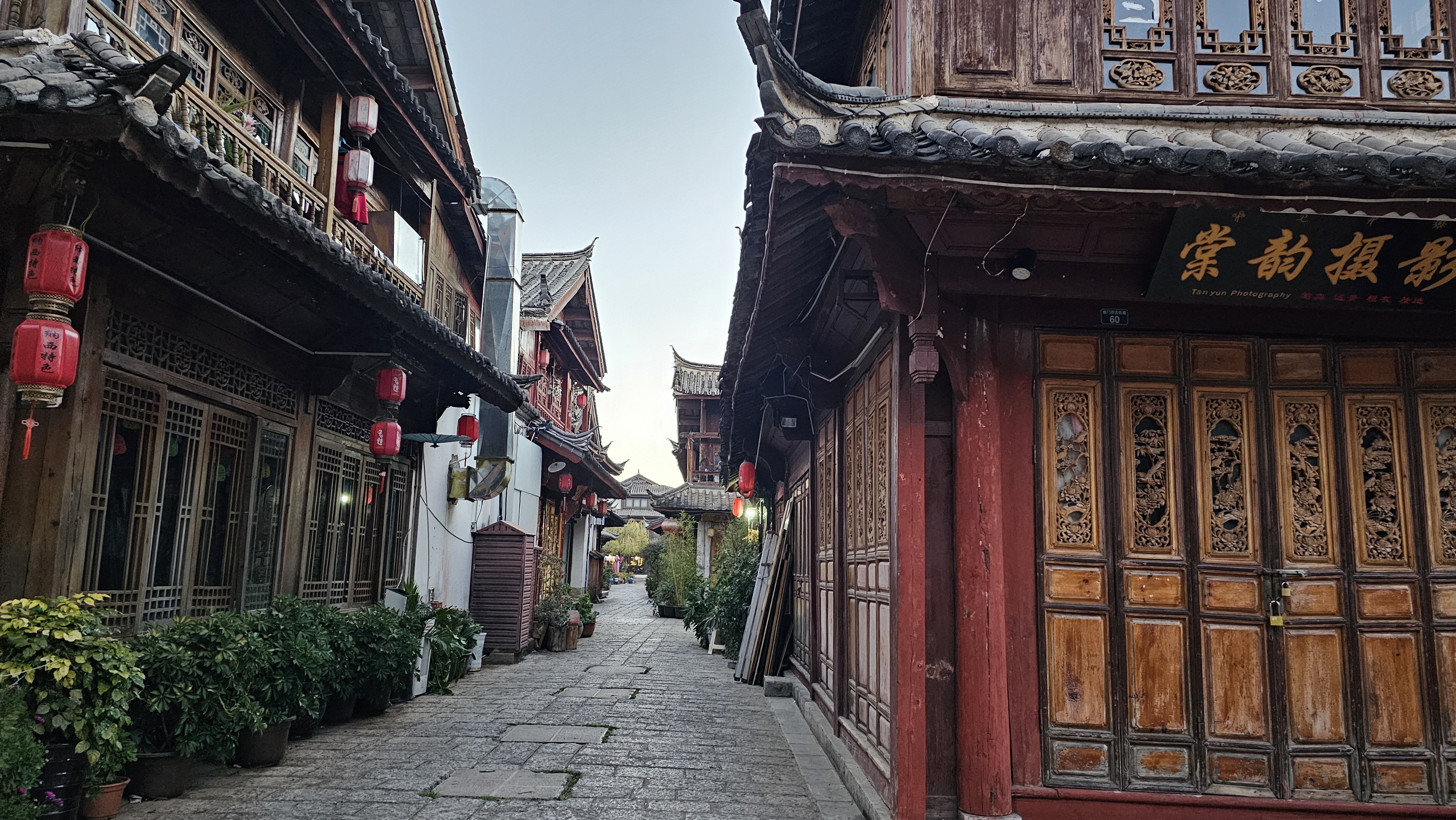6시 반 조식, 8시 반 출발이라 여유가 있어 남문으로 나가 인적 드문 여강고성을 보았다. 벌써 문을 연 가게도 있고 김이 올라오고 있는 음식점도 보인다. 여행지의 속살 같은 분위기를 느끼려면 이런 시간이 좋다. 온전히 그 공간을 여행객이 아니라 그곳에 사는 이처럼 어슬렁거릴 수 있기 때문이다.