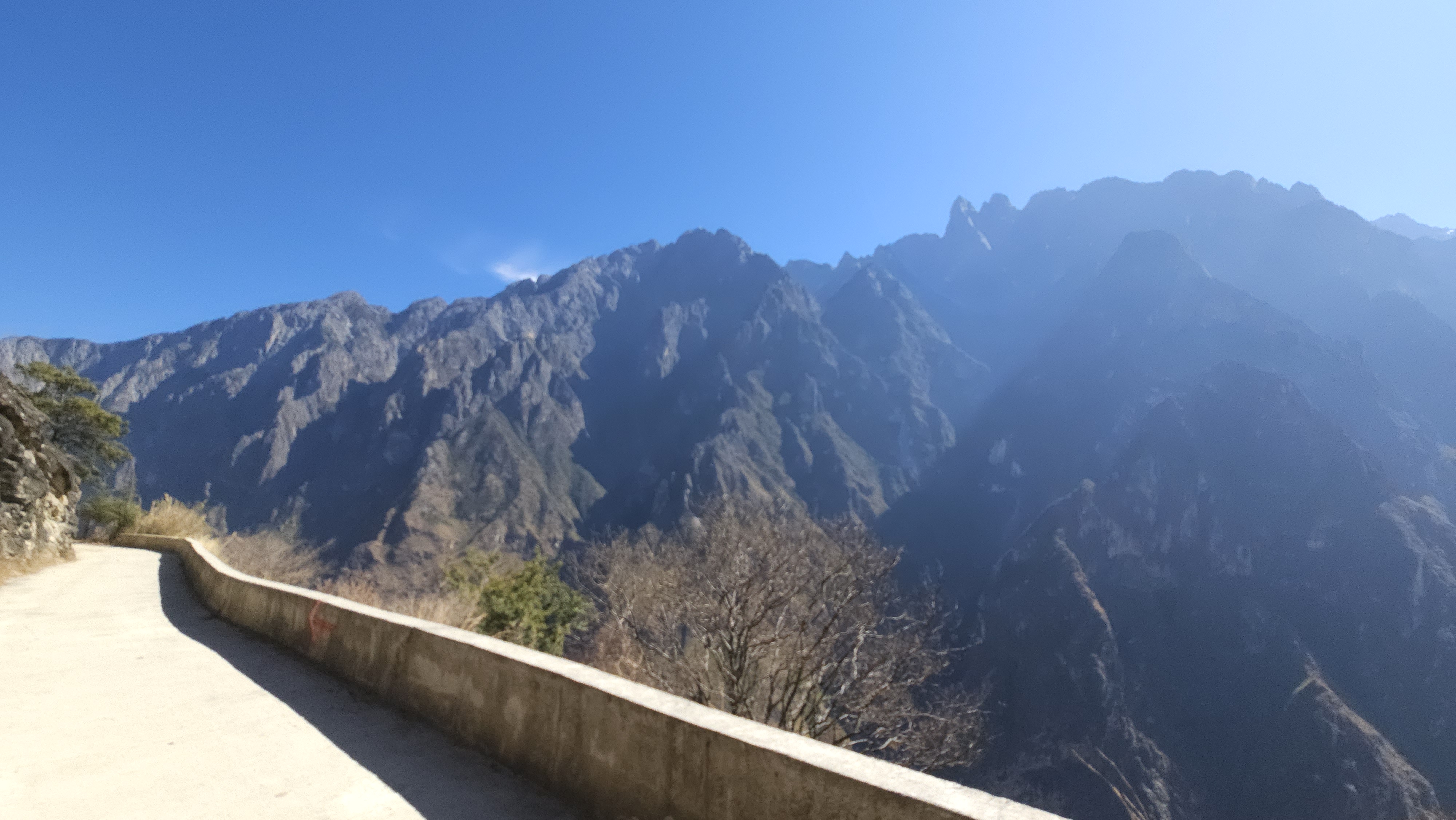 중도객잔 가는 길은 그래도 가드레일이 설치되어 덜 위험해 보인다. 하지만 오른편으로 까마득한 절벽, 그 너머 험한 돌산은 보고 있으니 그 길을 차를 타고 가고 있다는 것 자체가 비현실적으로 느껴진다. 아차 하면 굴러떨어질 듯한 높고 구불거리는 길이다.