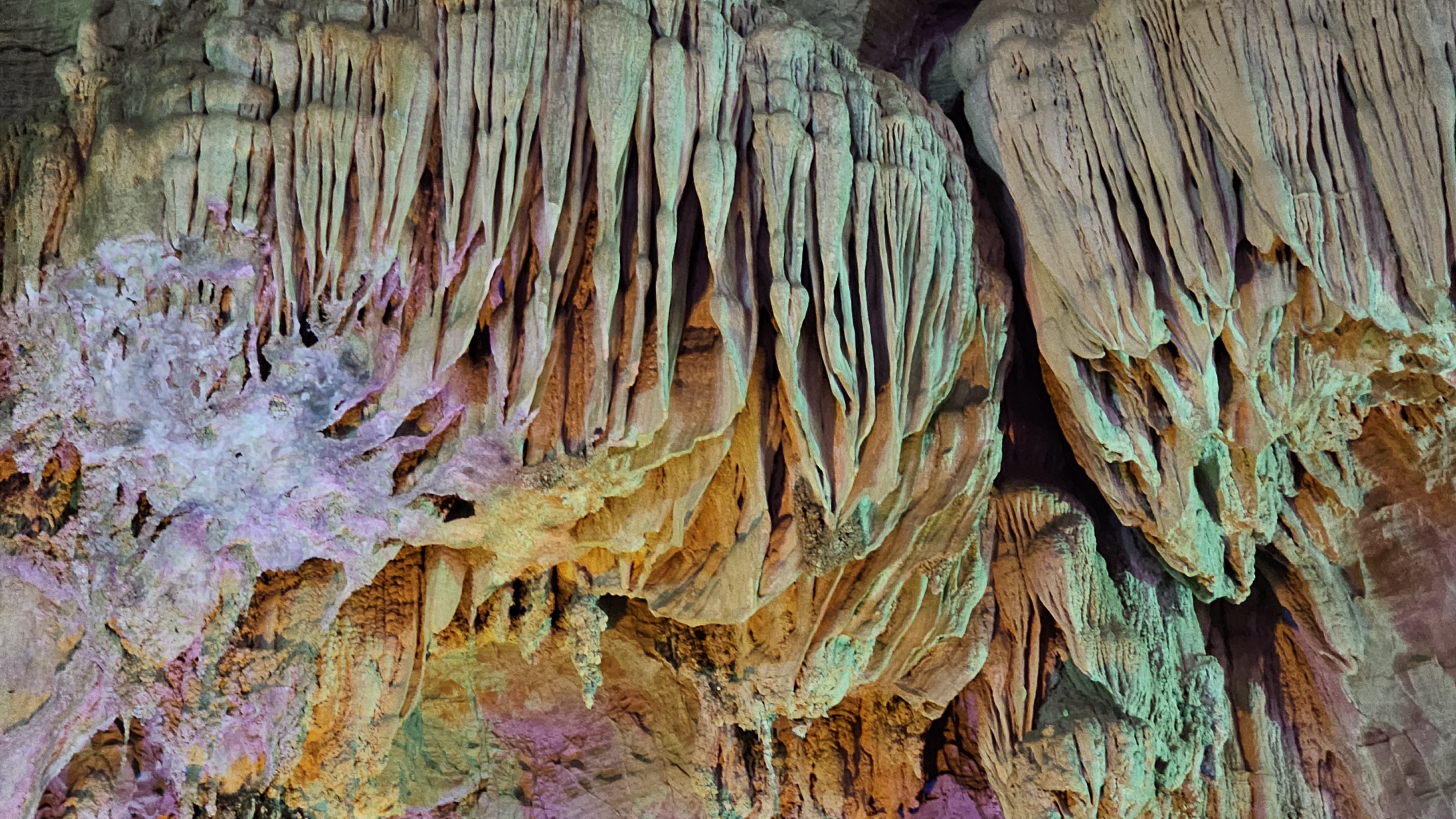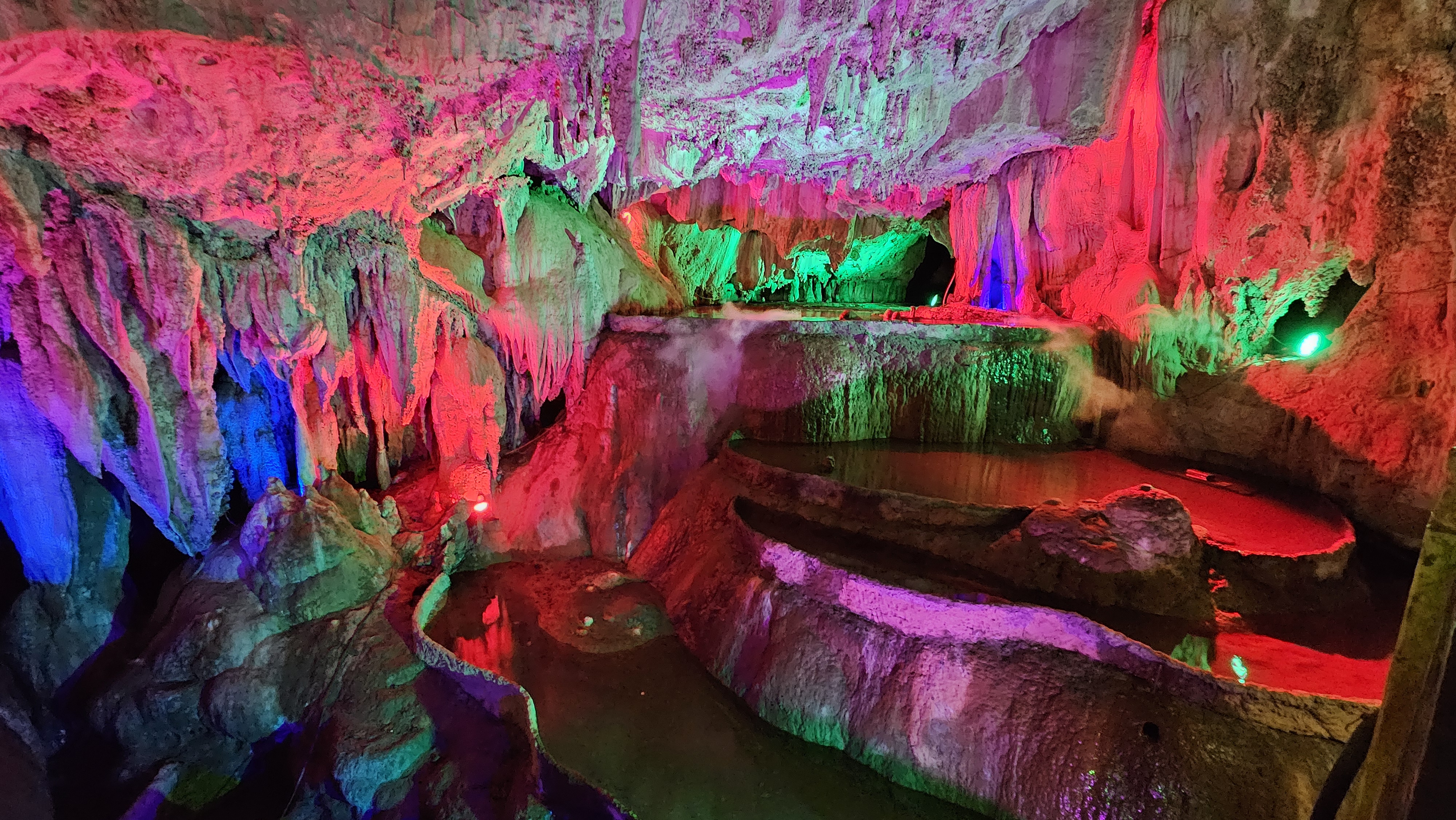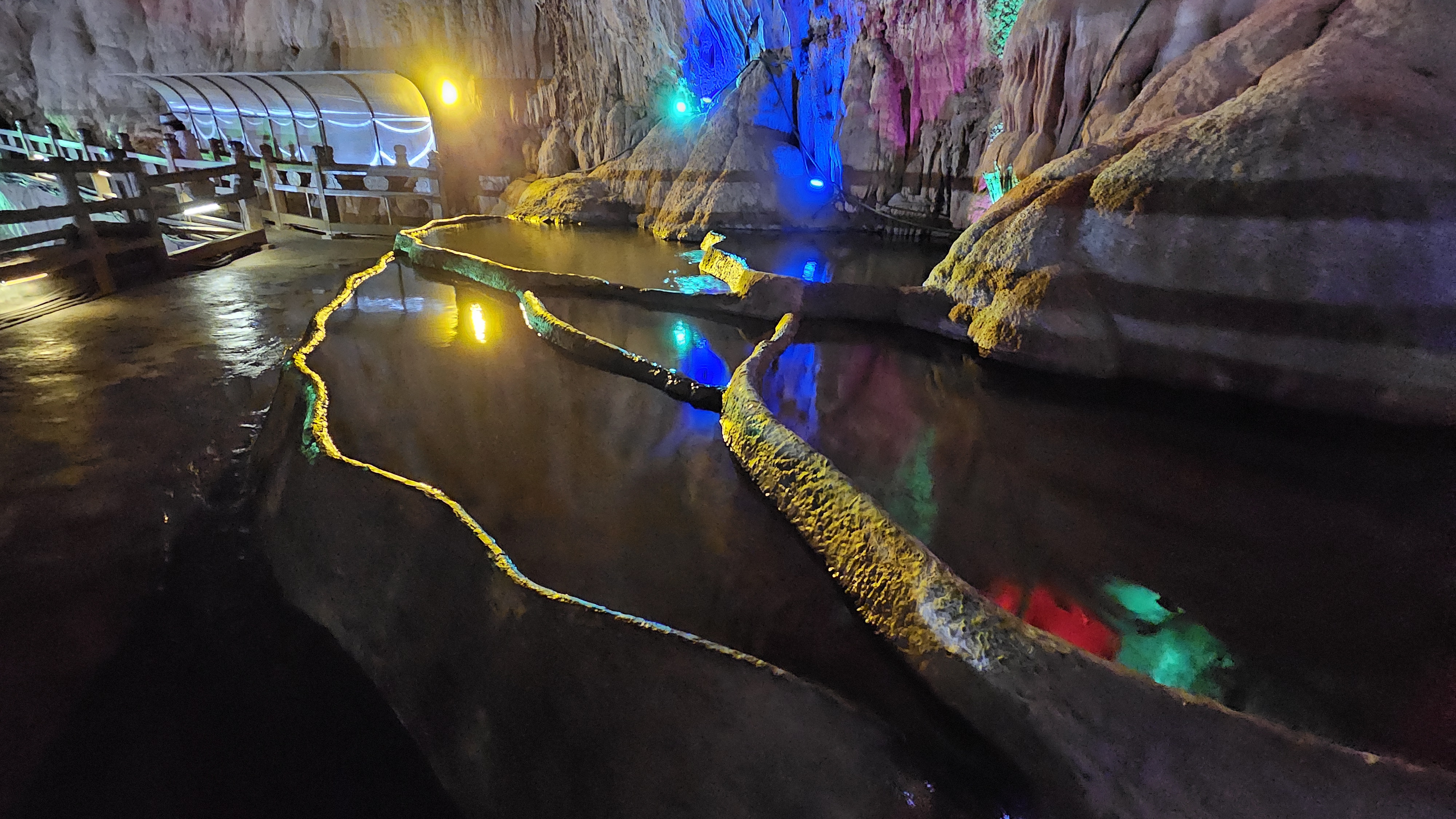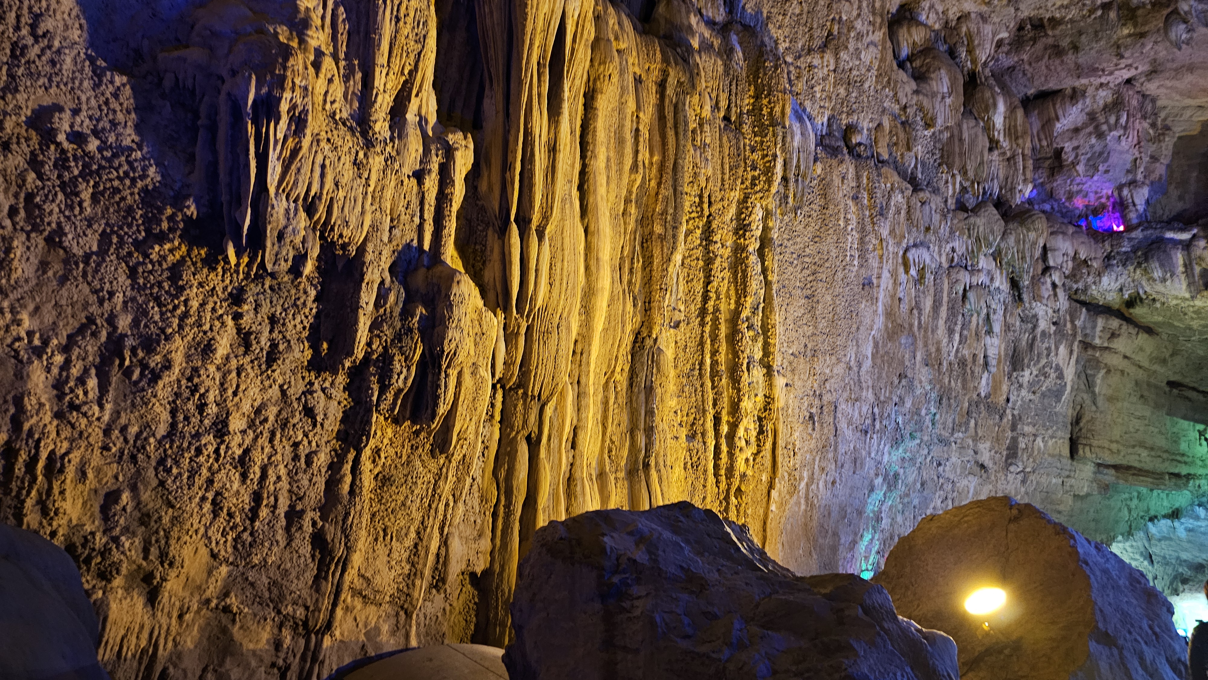 동굴의 규모가 워낙 크다보니 천정도 높아서 다닐 때 머리를 숙일 필요도 없고 길도 넓고 반듯하다. 사람이 엄청나게 많다고 하는데 날씨가 안 좋아서인지 적당한 수의 사람들만 있어서 앞 사람을 따라가는 것이 그리 힘들지는 않았다. 높은 천정과 종유석이 장관인 동굴홀, 지하폭포, 다랭이논처럼 보이는 구조 등 형태도 다양하다. 거기다가 다양한 색깔의 조명까지 설치되어 있어 눈길을 끈다.