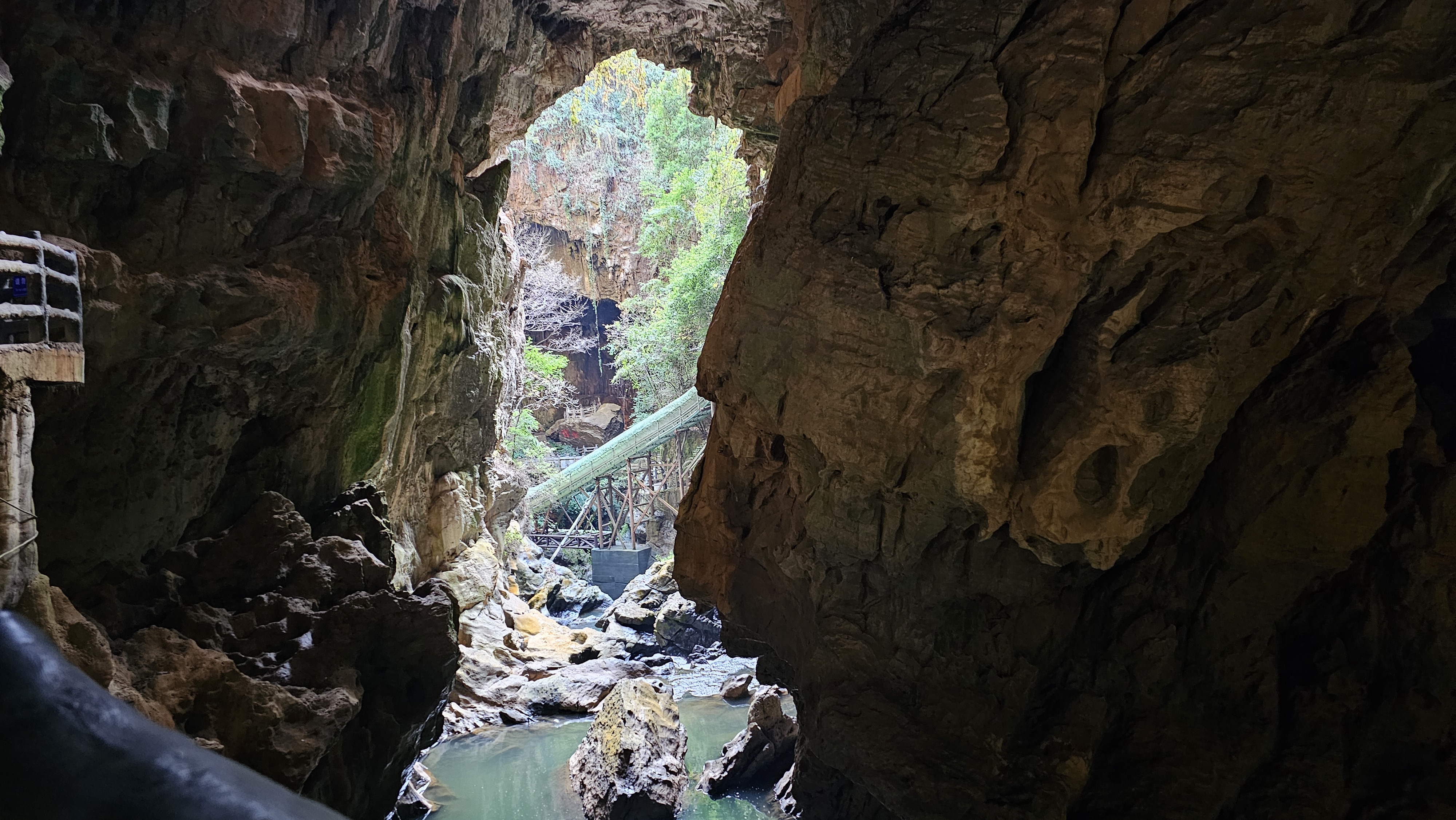 점심을 먹고 이번 여정의 마지막 코스인 구향동굴로 이동하였다. 점심 먹는 동안 또 비가 오고 천둥도 치더니 다 먹고나니 다행히 날이 맑아졌다. 구향동굴은 엘리베이터를 타고 내려가 동굴 주위의 협곡을 배를 타고 한 바퀴 돈 다음 동굴로 들어간다.