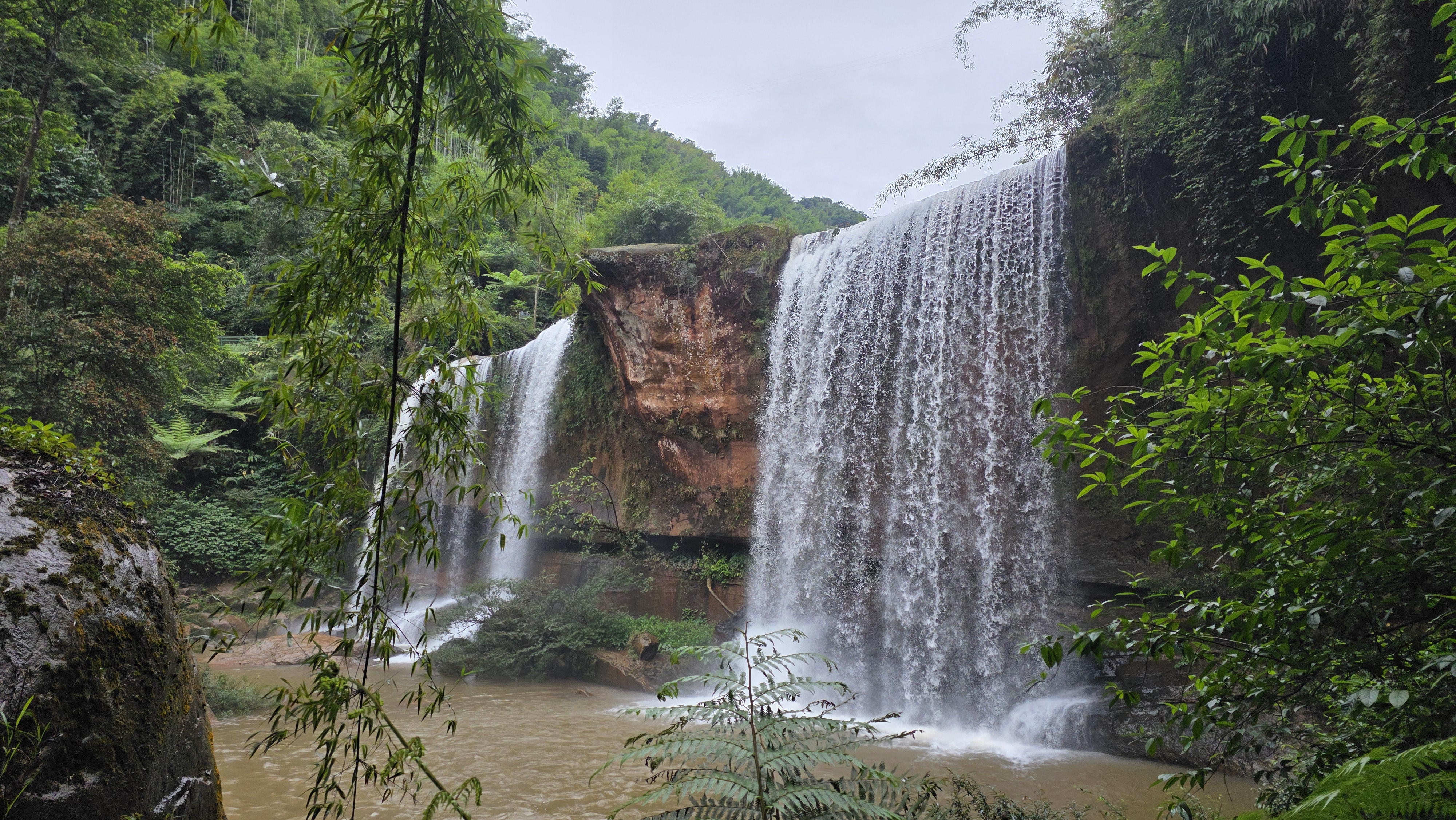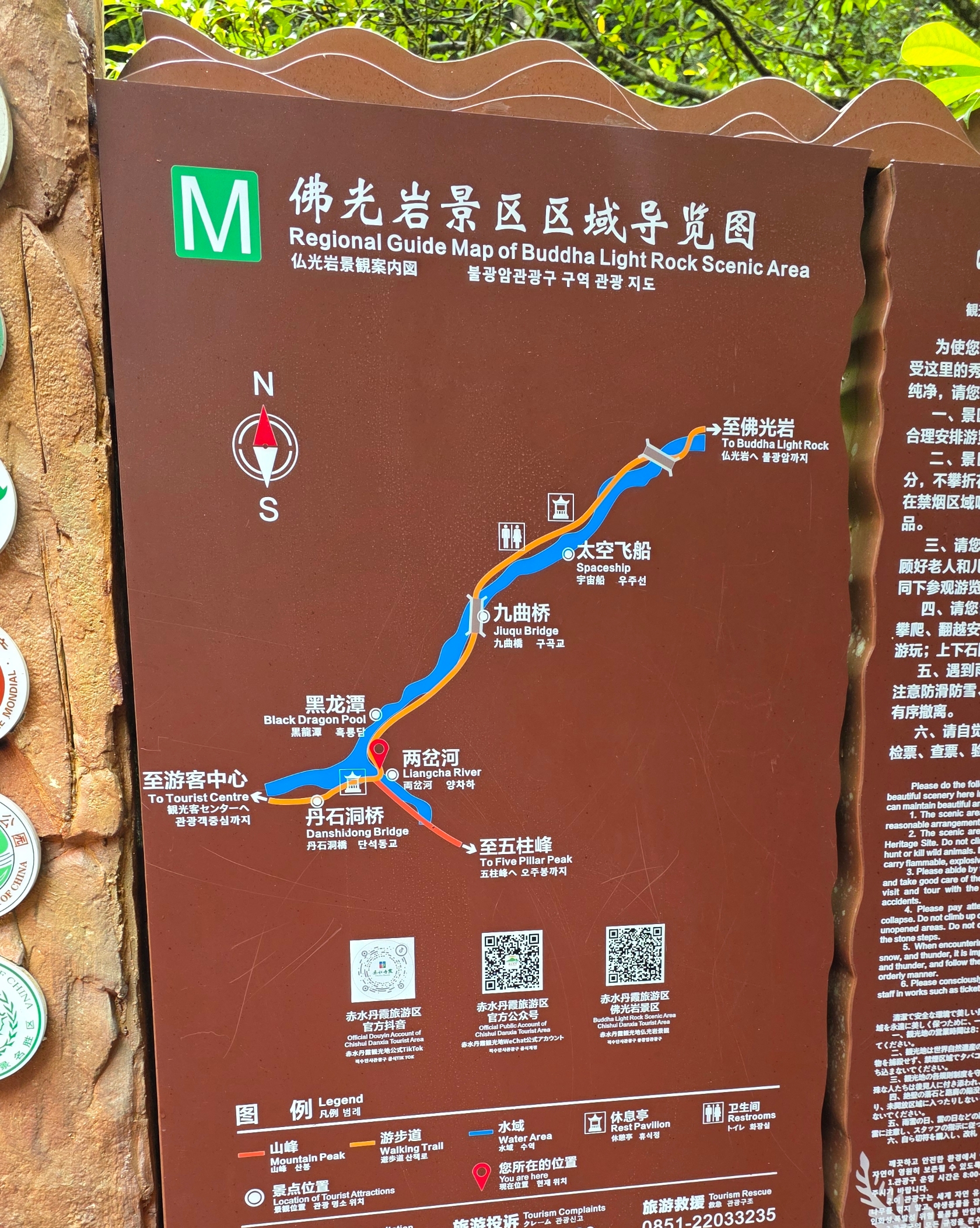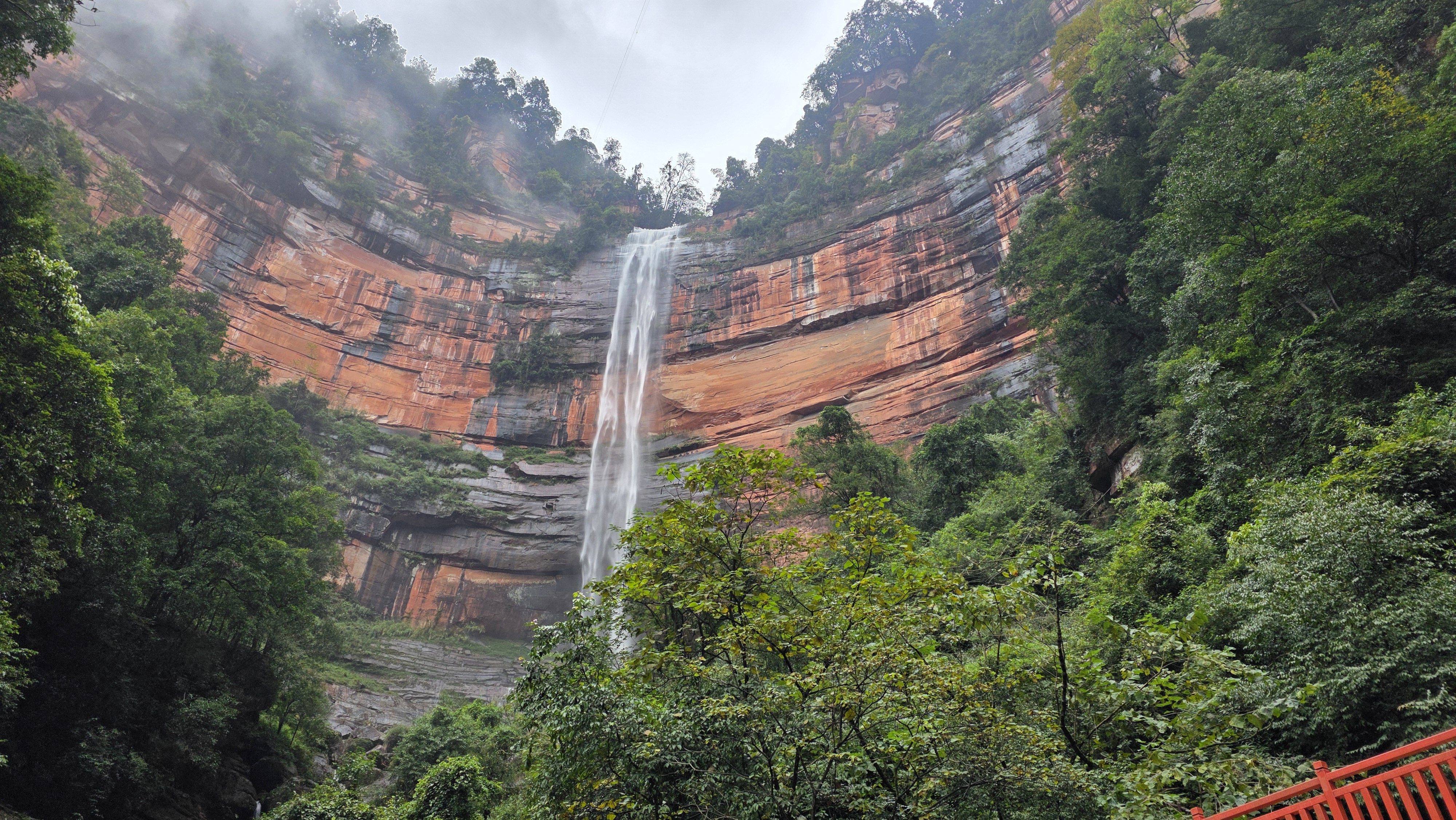 불광암 폭포(佛光岩 瀑布)는 높이 약 90m, 폭 약 20~30m의 대형폭포로 불광(佛光)은 부처의 빛이란 뜻이다. 절벽 전체가 거대한 붉은 암벽인데, 햇빛, 물안개, 습도 조건이 맞으면 암벽에 빛의 테두리(광륜)가 생겨 이 현상이 마치 불교에서 말하는 불광처럼 보여 이름이 붙었다. 그래서 불광암은 “중국 단샤의 왕(丹霞之王)”이라 불린다. 대부분 단샤는 건조한 지형인데 적수는 강수량이 풍부하여 단샤 + 폭포의 희귀 조합으로 웅장한 폭포가 만들어졌다고 한다.